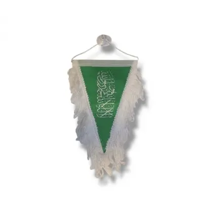 Üçgen Tevhid Bayrağı 11x18 CM Kristal saten kumaştan üçgen Tevhid Bayrağı üçgen Flama ve çift taraflı olarak imal edilmiştir.Çift yüzlü baskı iki kumaş arası karton tabakası konulmuş,etrafı saçaklı olup,üstden makreme ip ve vantuz eklidir. Dijital baskı kalitesi ile kalıcı ve canlı renkler oluşarak imal edilmiştir.GÖKBAYRAK; Müşteri memnuniyetini birinci prensip edinmiş bir kuruluştur. Üçgen Saçaklı Tevhid Bayrak Flama, deneyimli personelimiz tarafından özenle birinci sınıf kalitede üretilmektedir.Teslimat sonrası ürünlerimizden kaynaklanan her hangi bir sorunda, tamamen firmamız sorumludur.Sorunlarınızı dinlemek ve çözmek için bize ulaşabilirsiniz. Ürünlerimizin ve fiyatlarımızın ihtiyacınıza uygun olması dileğiyle, bol kazançlı günler dileriz.
